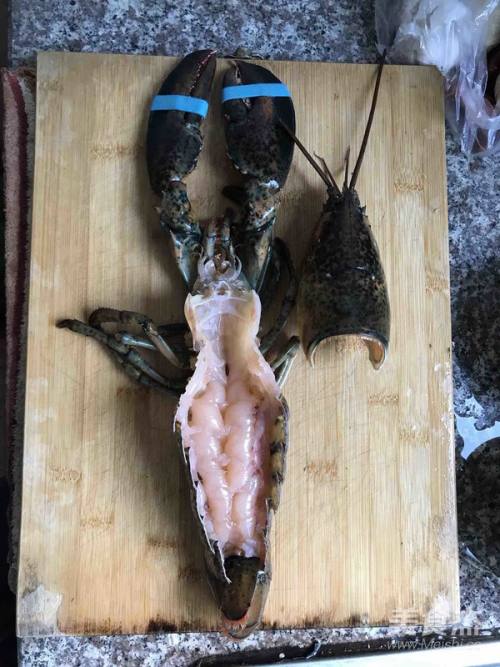 龙虾剥开,去鳃,虾黄取出炒制,虾肉切碎