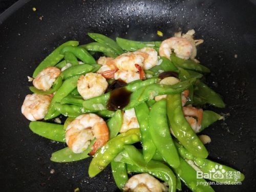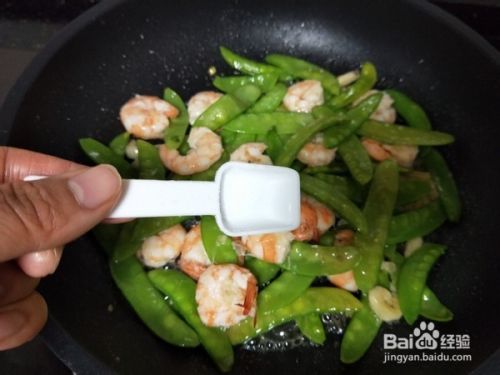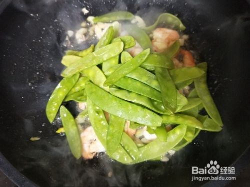 虾仁爆香。这才好吃,爆出虾仁的鲜味在炒荷兰豆鲜香好吃。