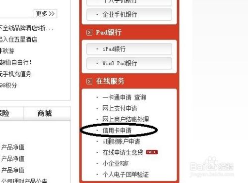 进入官网后,在网页右侧找到“信用卡申请”,点击进入