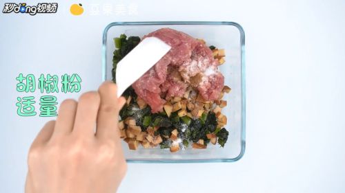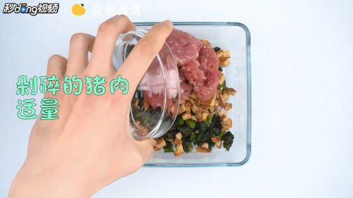 6加入适量剁碎的猪肉馅。