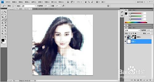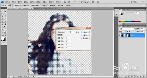 执行滤镜-像素化-色彩半调命令,将最大半径设为4,其他通道为0,如图:
