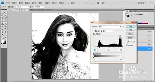 选择通道面板,复制对比不明显的蓝通道,按Ctrl+L调整通道黑白。