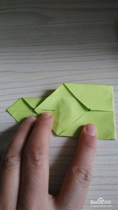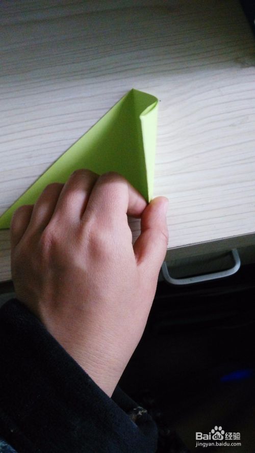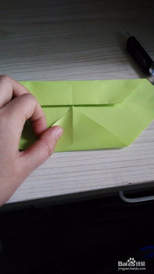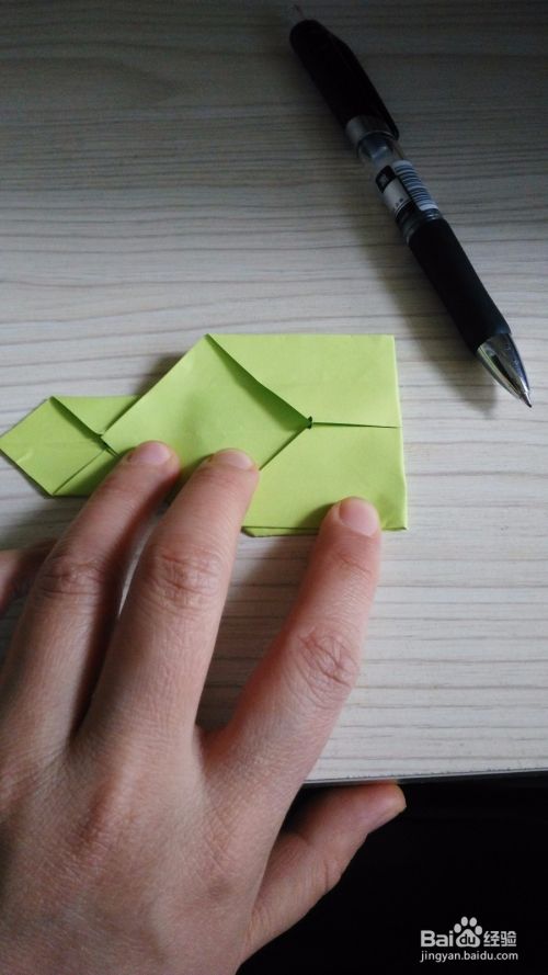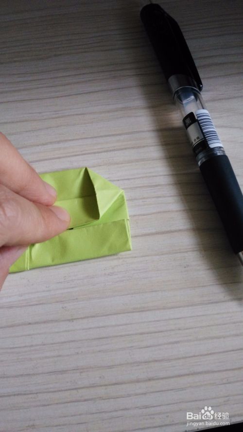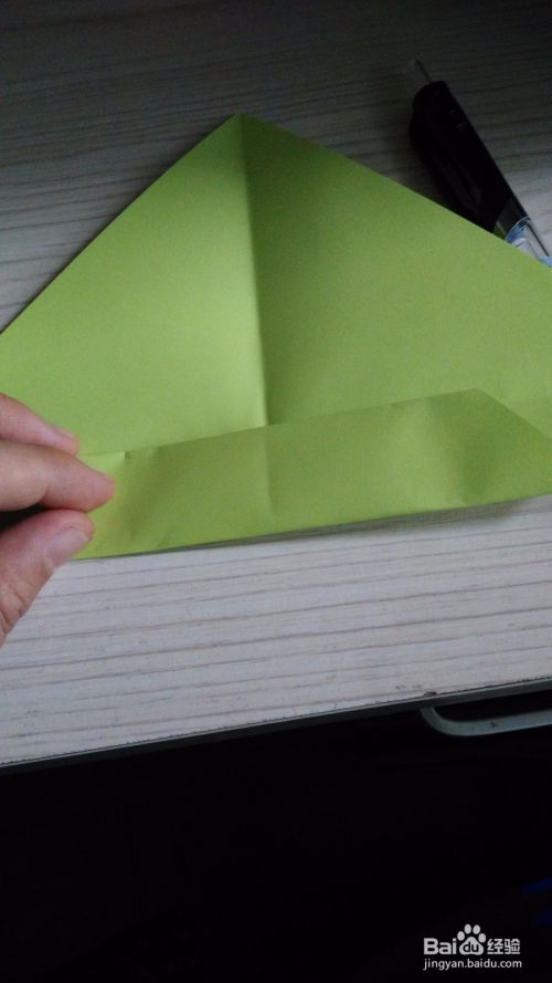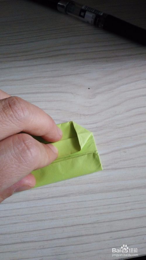往底边对折一下,形成一个小三角形,(如步骤3一样),两边是一样的折法。