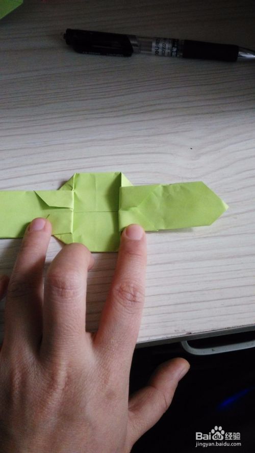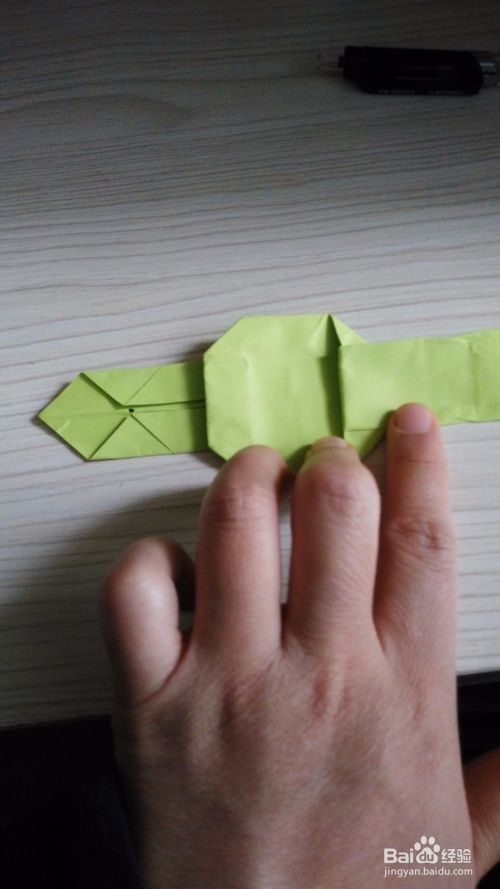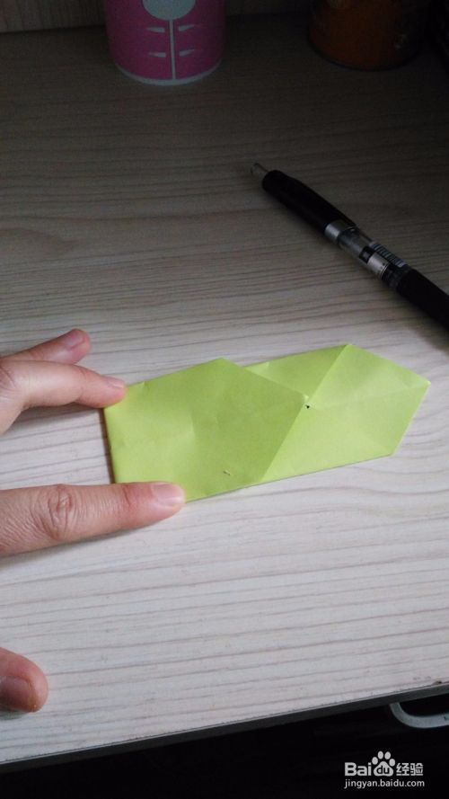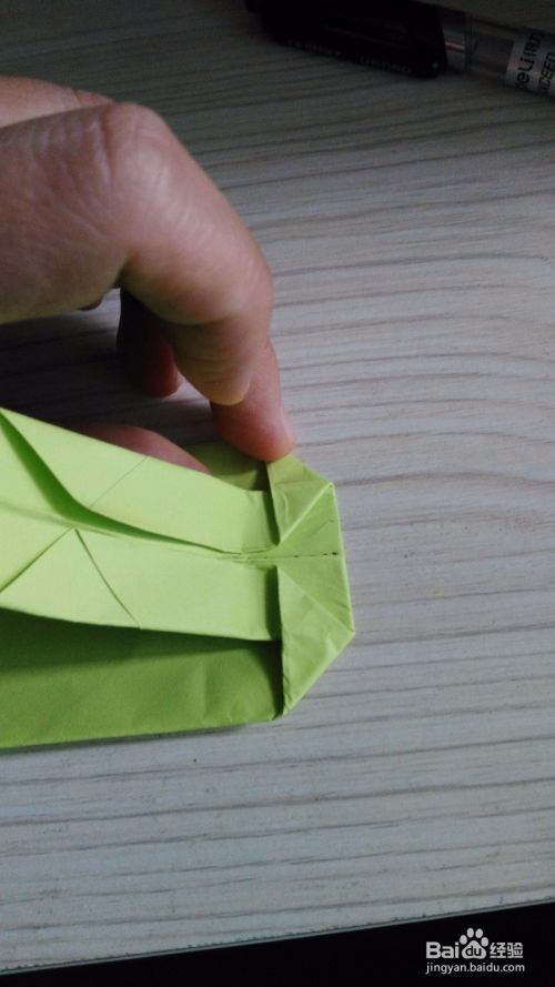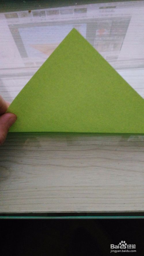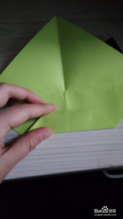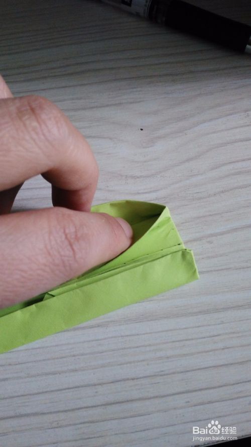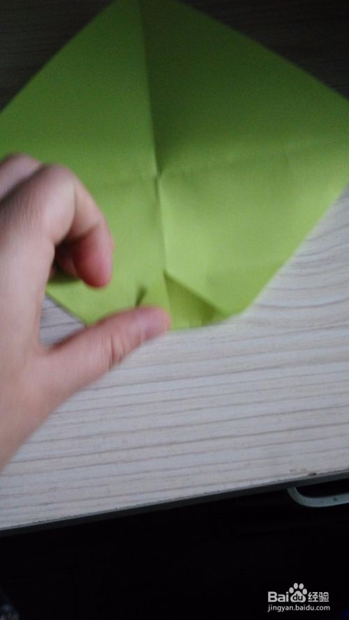 往底边对折一下,形成一个小三角形,(如步骤3一样),两边是一样的折法。