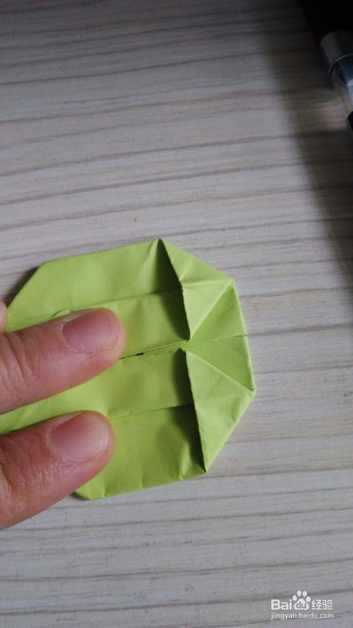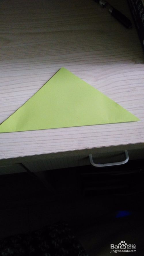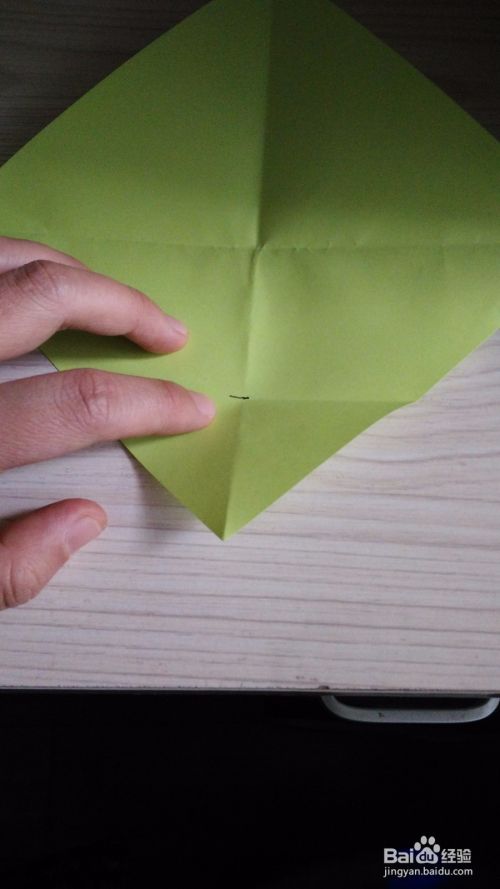 拿一张正方形的纸,角对角对折,形成一个十字。然后往中间线对折一下,打开就会看到一条折线,往折线对折一次形成一个小三角形,然后依次对折,总共三次,同理对面也是一样。折完后就会形成图中所示。