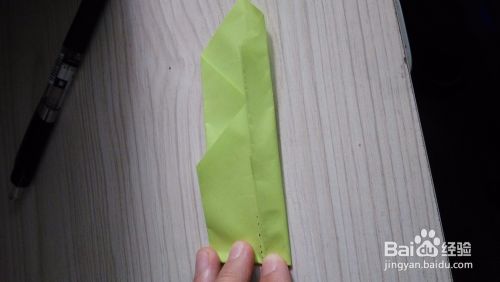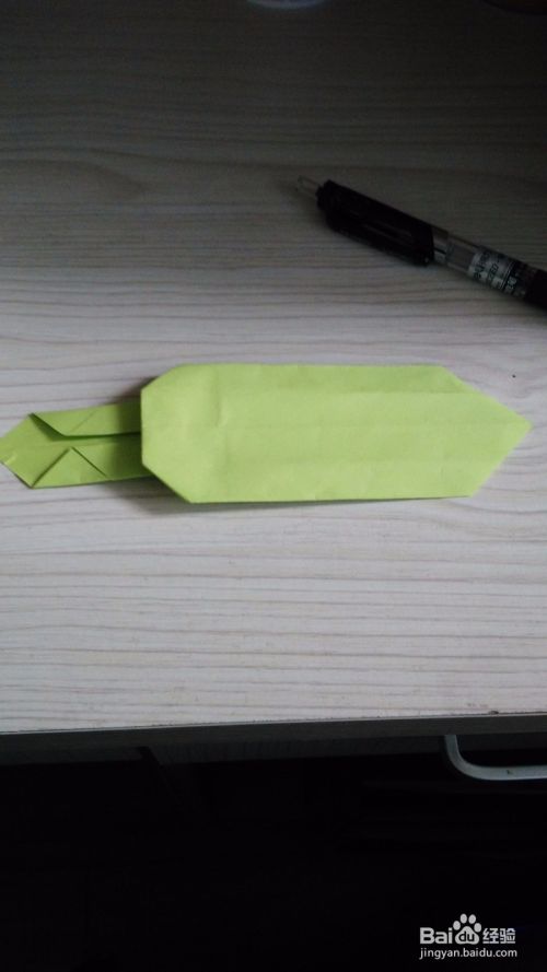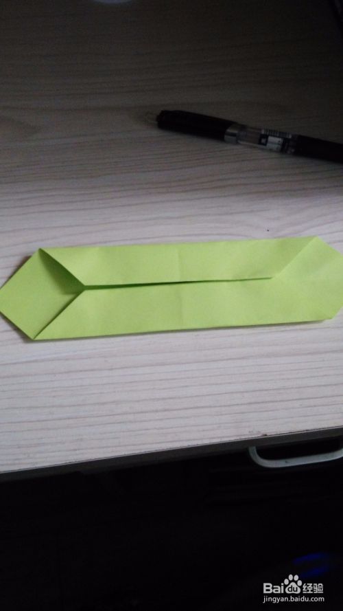 然后把底边对折一下,就会形成一个小三角形,另一面也是一样。在折痕处中间线再对折一下。然后反过来。