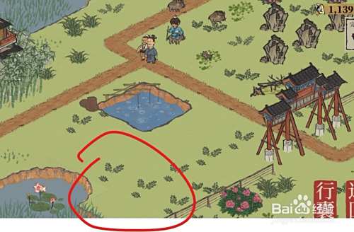 第三把钥言国胳匙位于乞丐旁的鱼池下忌激方位置。