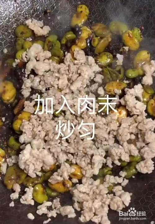 加入水,盖上锅盖煮至水微干,加入肉末翻炒均匀。见下图