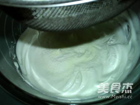 4低筋粉,奶粉混合,筛入蛋糊中,