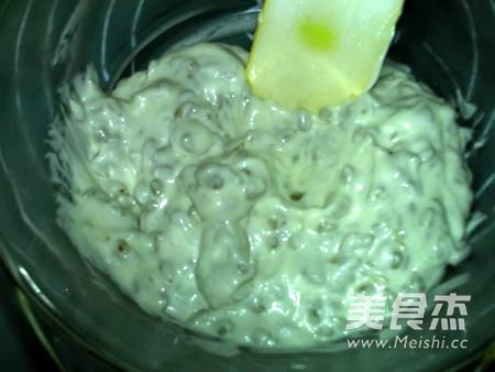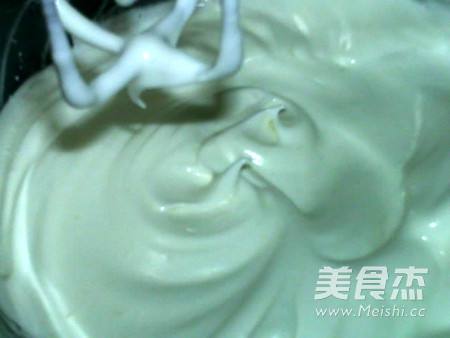 3用打蛋器搅打成带小弯勾的湿性发泡。