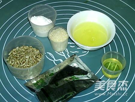 1用料:蛋清40克,低筋粉20克,砂糖25克,瓜子仁50克,玉米油12克,奶粉5克