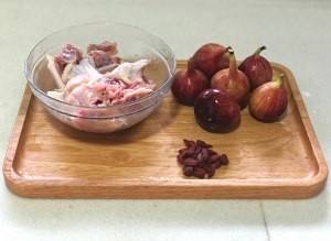 盐、生粉、油腌鸡肉枸杞、无花果洗净;