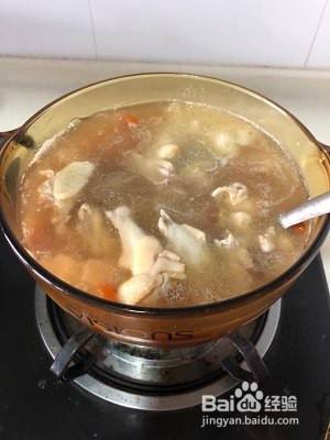在炒锅中将鸡汤大火滚至奶白或浑浊,再将鸡汤和鸡肉倒回放有无花果的锅中,再大火滚三至五分钟,即可食用