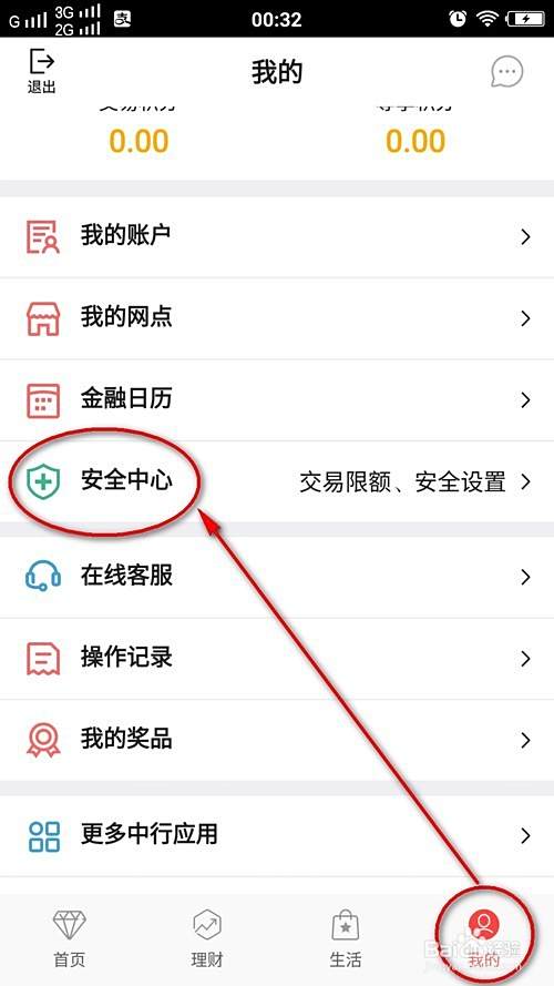 登陆中国银行手机APP,登陆之后,点击我的,再点击安全中心。