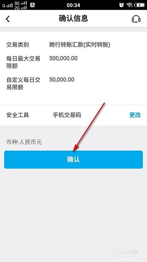 点击下一步后,界面会弹出确认信息,可以看到最大交易限额和自己修改后的限额,点击确认。