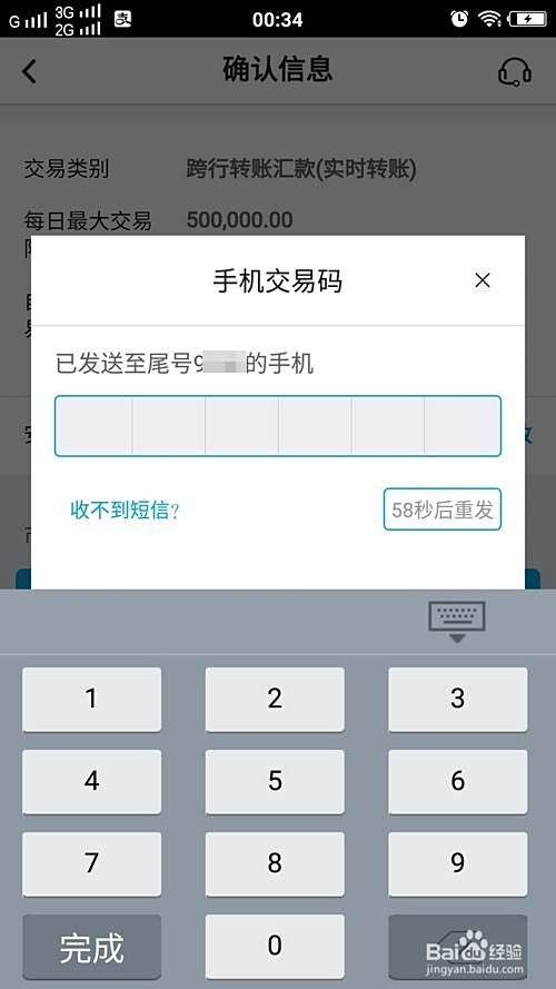 点击确认后,页面弹出验证信息,输入手机收到的验证码。输入验证码后,页面弹出操作结果,显示已经修改成功的交易限额。