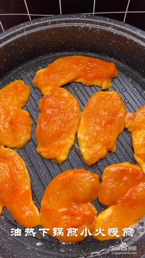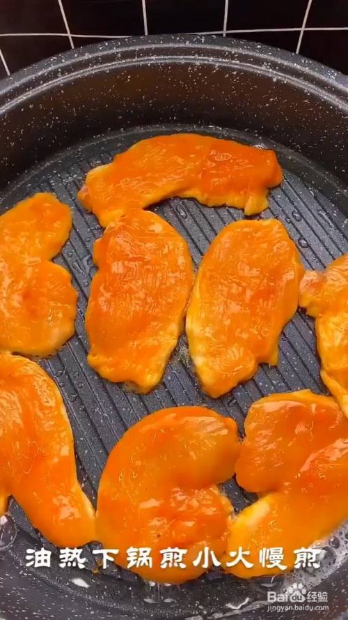 抓拌均匀腌制十分钟 锅刷油 放入鸡胸肉