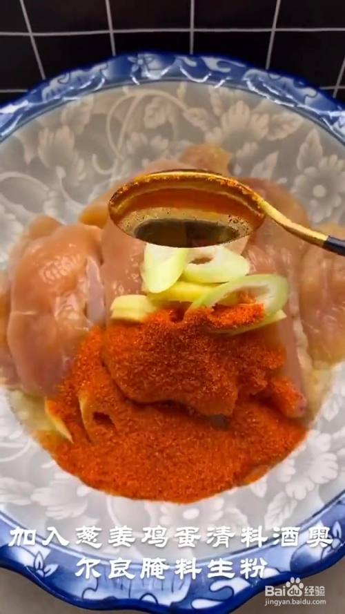 鸡胸肉切薄片 加入葱姜10g 鸡蛋清一个 料酒5g 奥尔良腌料10g 生粉5g