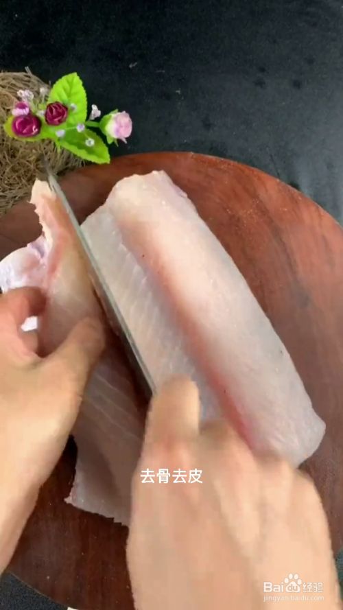 我们将鱼肉切下来,将其剁成鱼肉泥装入碗中,加入适量的盐,葱姜水,蛋清,和水淀粉搅打上劲
