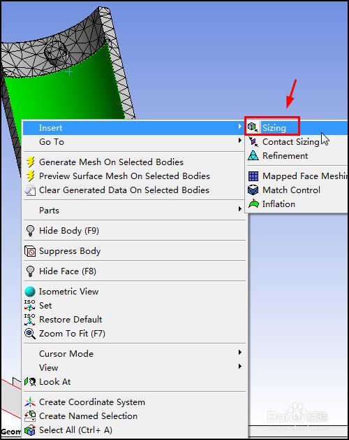 发现网格比较粗糙,计算出来的结果也不是很准确,怎么办呢?细化网格,选择要细化的面,再点击右键,如图所示