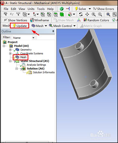 先用软件推荐的网格设置,进行划分。选择mesh,然后点击update更新,如图所示