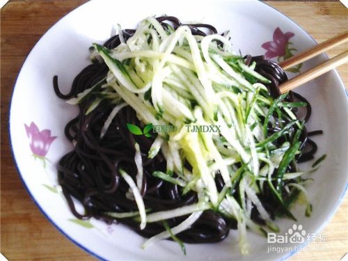 吊瓜切成丝加入上面,切记吊瓜别切太细,要不影响口感 。