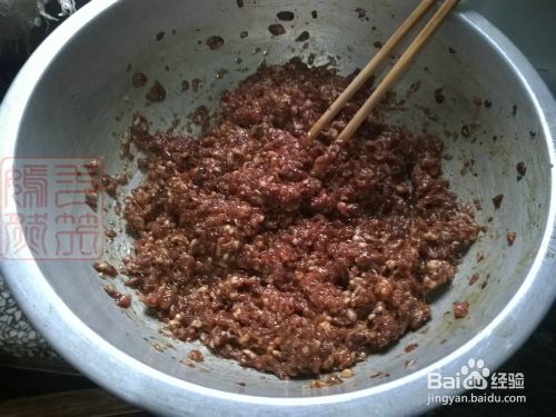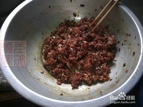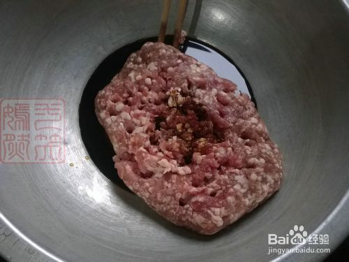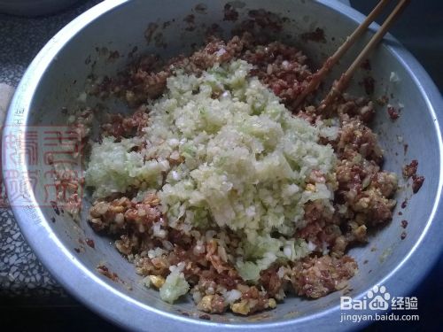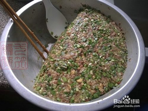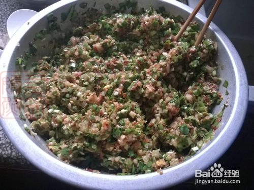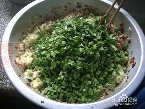 最后加入香油和盐,拌匀,用平铲拍平,饺子馅就完成了,