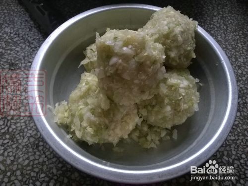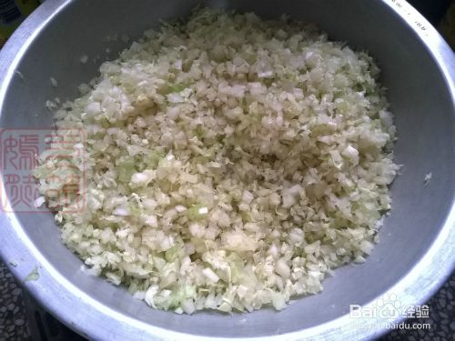 白菜剁碎,加1汤匙盐,腌5分钟,然后攥水,