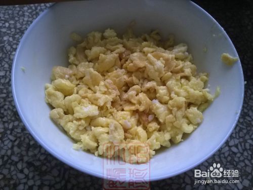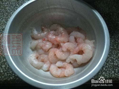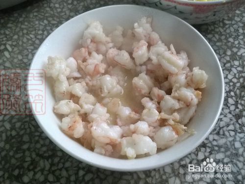 虾仁用清水浸泡,去除虾线,切成小块,炒熟,