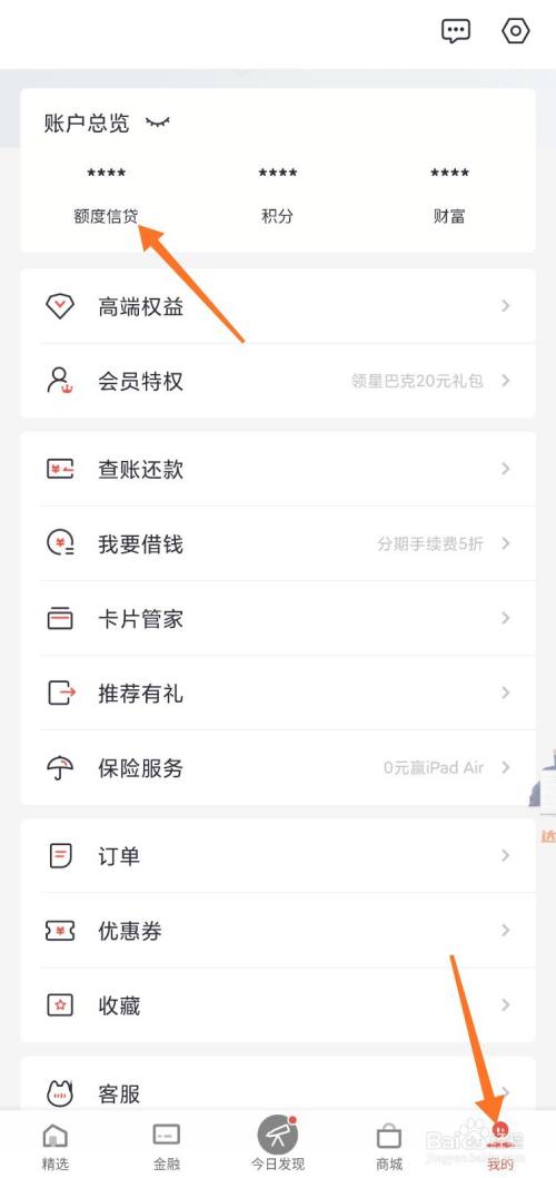登录【掌上生活】,在我的页面点击【额度信贷】。