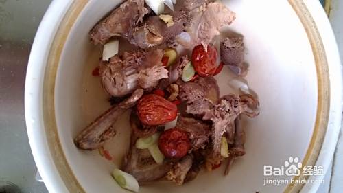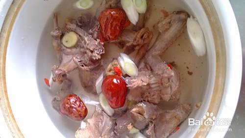 砂锅准备好,将鸽子、葱姜、大枣、枸杞都放进去。