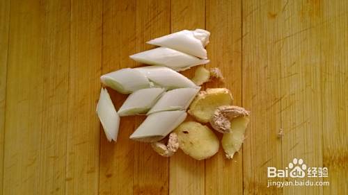 葱切小段,姜切片备用。