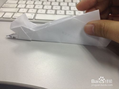 然后,把翅膀向下折,折出两个飞机翅膀。大功告成了,这样看上去是不是有点像个老鼠,哈哈,有闲情逸致的可以画个眼睛啥的。