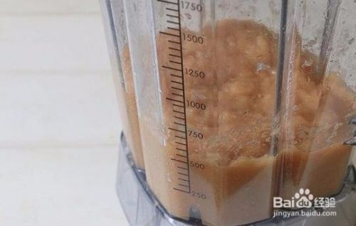 把切成块的苹果倒入料理机里,加少许水,打碎。