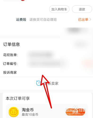 在订单详情的页面中,下滑找到并点击投诉商家。