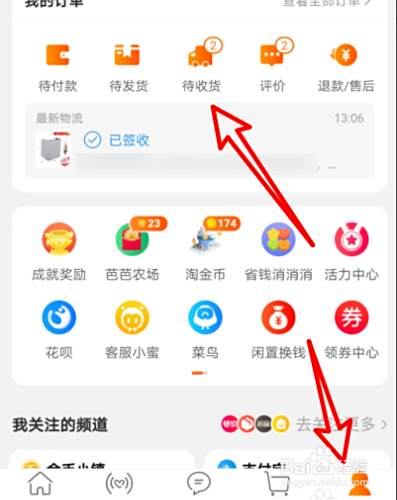 首先打开淘宝APP,进入个人主页,点击待收货页面。