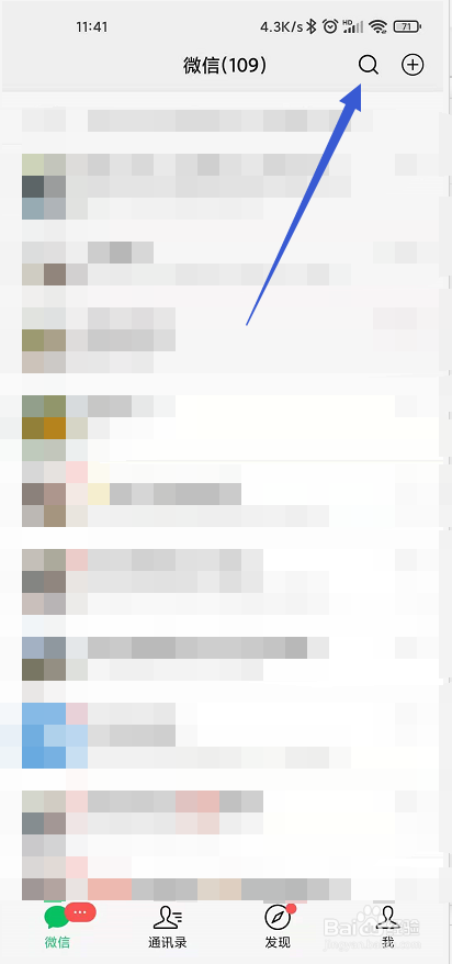 打开微信,点击放大镜