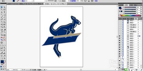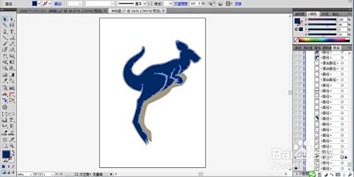 复制这个袋鼠的身体轮廓路径再缩小为90%左右,我们填充蓝黑色。