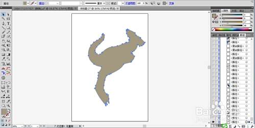 先选择钢笔画出一只跳跃而起的袋鼠的剪影,重点就是尾巴、双腿、头部的动作轮廓,我们用灰色填充这个动作轮廓。