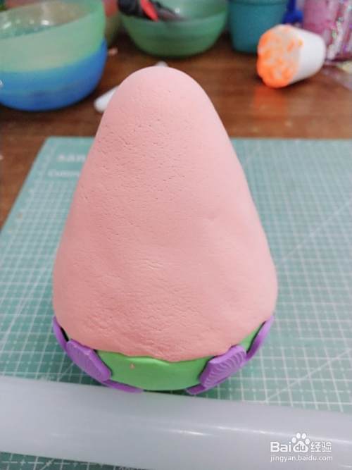 用白胶粘绿泥(不涂就行)用剪刀剪掉多余的部分
