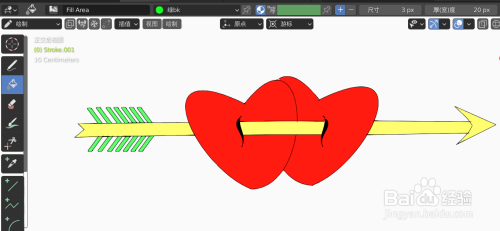 使用填充笔刷给模型填充自己喜欢的颜色,一箭穿心的2D简图模型就设计好了,如下图