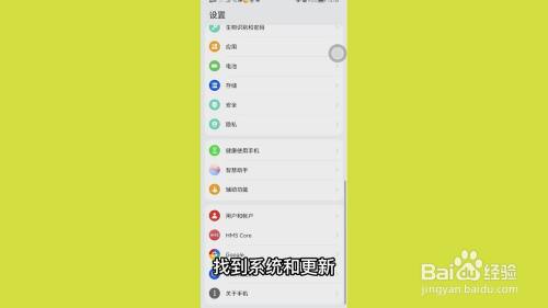 打开手机桌面上的{设置},找到{系统和更新}。
