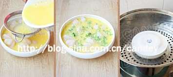 7蒸锅大火烧开转小火,放入蒸碗,在上面扣一个碟子,蒸10-12分钟至表面中心处浮动不明显,关火出锅。