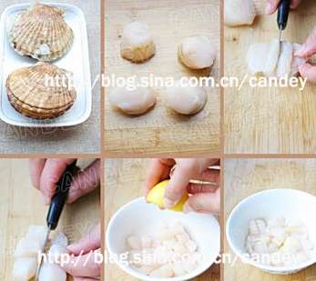于是,再做,就想到了柠檬。柠檬可以给海鲜去腥,提鲜,让肉质恢复一些细嫩,这样处理一下之后,效果还真不错,贝肉又恢复了鲜甜细嫩。