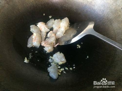 把虾放入锅中炒熟,加料酒去腥