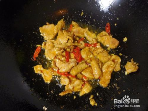 4.倒入用生粉,耗油搅拌好的廋肉,翻炒;