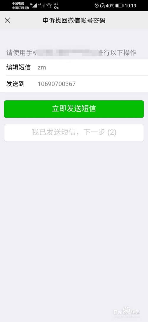 5、点击我记得微信号,填写微信号和可发短信的手机号,点击下一步。
