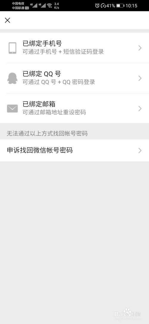 3、点击找回账号密码,点击申诉找回微信账号密码。