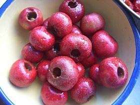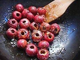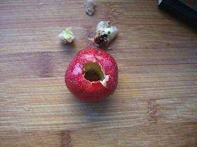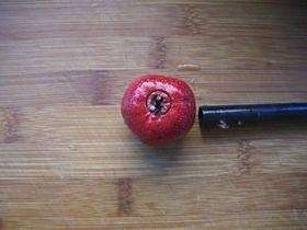 还是再说一下山楂去核的方法,山楂洗净,先用笔帽或者笔杆,从花蒂的部分压一下,感觉压到核了就行了