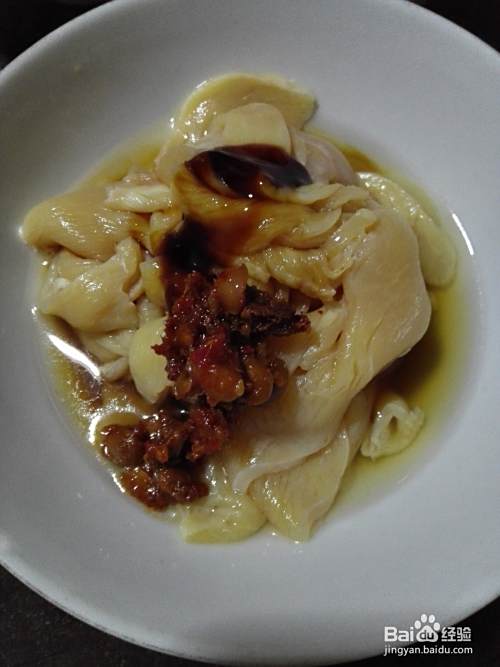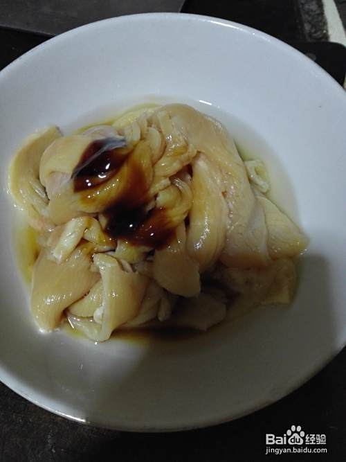 在鸡脯肉中加入适量蚝油;